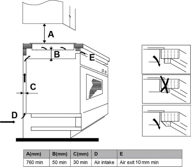 Также опасно устанавливать варочную панель вплотную к холодильнику или шкафу: следует оставить между ними расстояние не менее 30 см. Зазор между задней стороной варочной панели и стенкой кухни составляет обычно не менее 50 см для электрических панелей и 70 см — для газовых. Иногда стену кухни защищают огнеупорной панелью.
