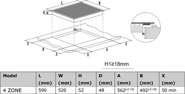 Глубина варочной панели представляет собой расстояние от ближайшей к пользователю ее точки до самой дальней. В первую очередь глубина определяется соответствующими размерами столешницы, куда варочная панель будет встроена, и уже во вторую — количеством и расположением конфорок.