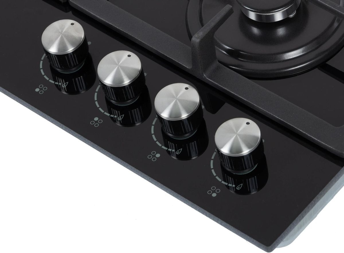 Цвет — черный. Открытый огонь не страшен ни вашей посуде, ни вам, так как горелки надежно закрыты решетками. Материал самой поверхности: закаленное стекло. Управление этой моделью механическое. Для переключения уровней нагрева, выбора функций используются следующие переключатели: поворотные. Простая система контроля за прибором делают его более универсальным, ведь разобраться сможет кто угодно.