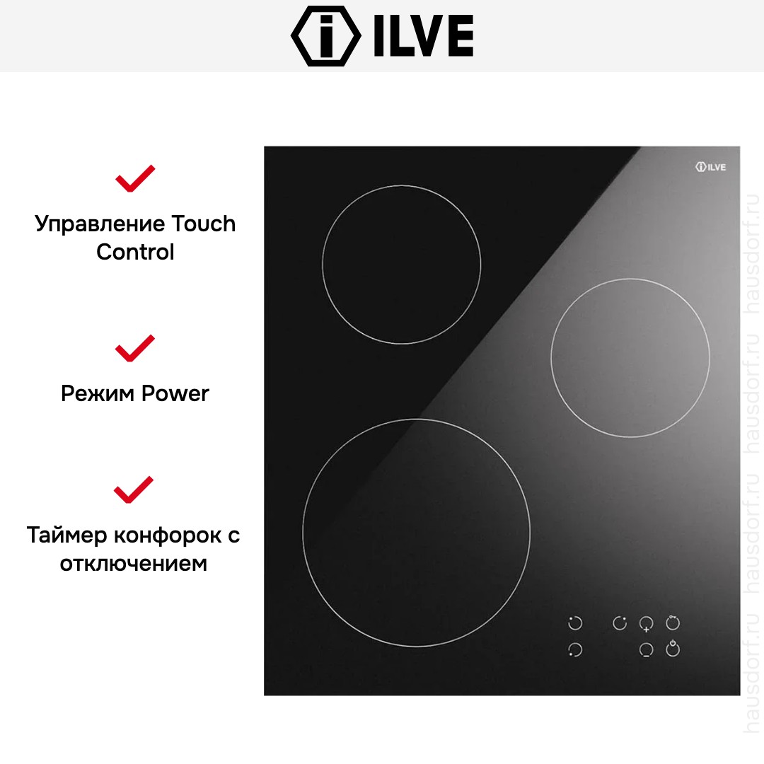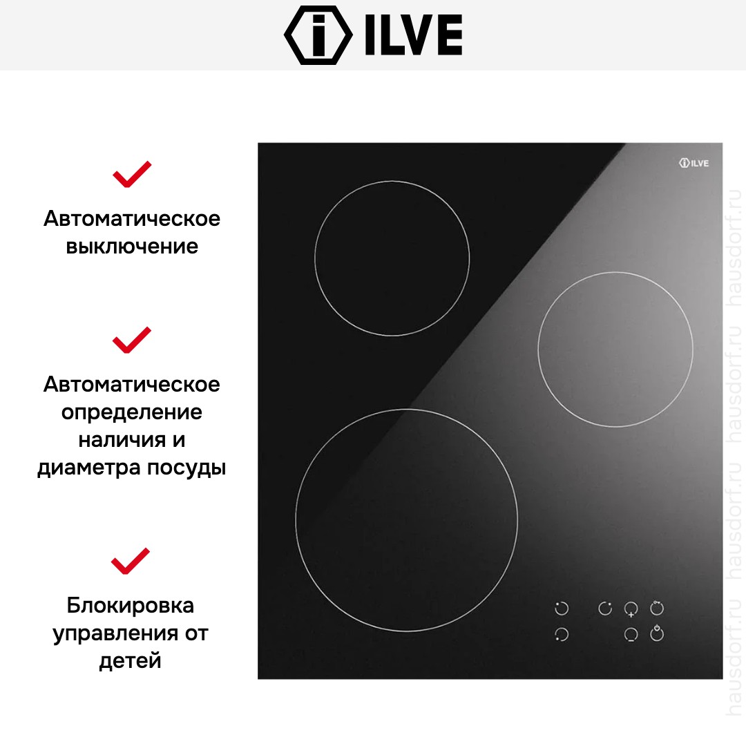 Модель Илве KHVI45TC входит в дизайн-линейку: Pro Line. Цвет — черный. Благодаря отсутствию рамки она отлично впишется в интерьер и не займет лишнее место на столешнице, которое можно использовать для работы. Материал самой поверхности: стеклокерамика. Управление этой моделью электронное. Для переключения уровней нагрева, выбора функций используются следующие переключатели: сенсорные/TouchControl. Продвинутая система контроля за прибором делают его современным и отвечающим на главные запросы покупателя.