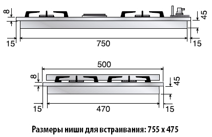 В среднем у газовых моделей этот показатель больше, чем у электрических. Высота газовых варочных поверхностей составляет обычно от 4 до 10 см: важное значение при выборе модели имеет и толщина столешницы. Известно, что стандартная толщина столешницы из ДВП составляет около 38 мм: исходя из этого, высота газовых варочных панелей чаще всего составляет 4–5 см. Если варочная панель имеет большую высоту, ее обычно заглубляют в столешницу, стараясь при этом не повреждать внутреннюю сторону. Для этого под ней устанавливают дополнительную полку (фальшпанель), за счет которой уменьшается пространство в тумбе.