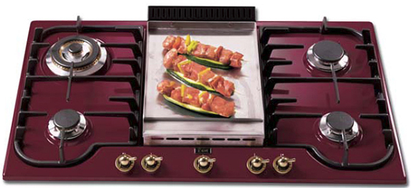 Реже выпускаются панели других оттенков — коричневого, красного, оранжевого, зеленого, цвета меди, фиолетового, бордо — их достаточно трудно сочетать с кухонными гарнитурами и бытовыми приборами. Газовые варочные панели необычных оттенков нередко оснащаются и оригинальной медной, бронзовой или латунной фурнитурой в стиле ретро. Любители цветных варочных панелей могут обратить внимание на продукцию Smeg, Kuppersberg, Kaiser, Ilve, Franke и ряда других производителей.