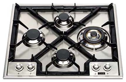 Данная газовая варочная панель имеет четыре горелки, которые расположены в форме ромба. Это создает необычный внешний вид, и может стать украшением современной кухни. Металлическая поверхность рабочей зоны легко моется, чугунные решетки снимаются, есть все необходимые функции, создающие удобство для грамотной домохозяйки.