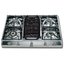 Чаще всего подобным грилем оснащаются варочные панели увеличенной ширины, она также может встраиваться рядом с другими конфорками в дизайне «домино». В газовых варочных панелях решетку или металлическую поверхность можно разместить прямо над горелкой, так что приготовление происходит за счет повышения температуры поверхности, а также под воздействием потока горячего воздуха. В индукционных варочных панелях чаще используется инфракрасный гриль, в котором воздействие раскаленного воздуха сводится к минимуму, так что пища не пересыхает и не пережаривается.