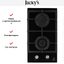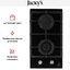 Двухконфорочные панели шириной около 30 см часто можно комбинировать с другими в дизайне «Домино». Такие панели нередко выбирают покупатели, которые пользуются для приготовления пищи другой техникой — мультиварками, духовками, СВЧ-печами. Конфорки при этом могут располагаться как в два ряда, так и в один, а форма панели может быть как привычной прямоугольной, так и овальной или в виде капли.