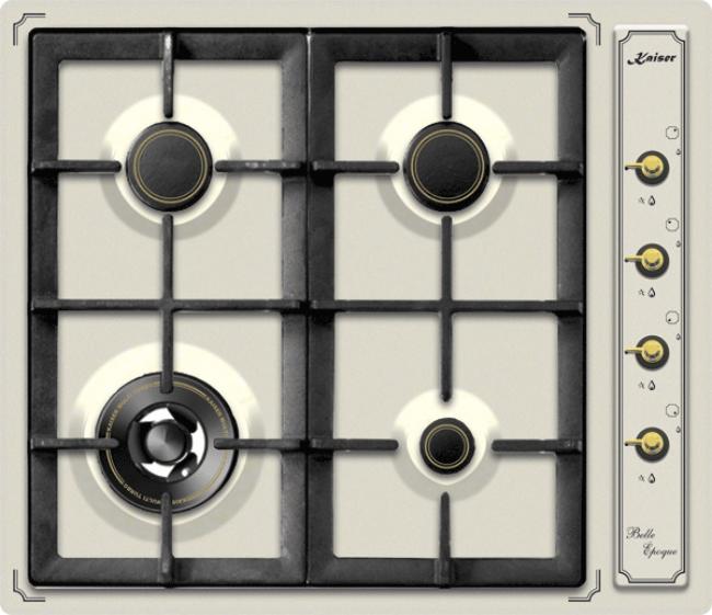 Каждая конфорка включает в себя, кроме рассекателя, основание и крышку. Крышка служит для отражения потока газа и поступления его в отверстия рассекателя. Мощность конфорки зависит от ее диаметра: в некоторых горелках имеется не один, а два или три контура пламени. Безопасность использования гарантирует система «газ-контроль», мгновенно останавливающая подачу газа при угасании пламени. Для размещения посуды на поверхности служит сплошная или раздельная решетка, которая чаще всего изготавливается из чугуна.