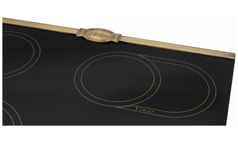 Для варочных панелей в стиле кантри, ампир или классическом характерны латунные ручки из сплава меди и цинка, которые смотрятся благородно и выигрышно. Реже производятся модели, имеющие золотистую или медную фурнитуру.