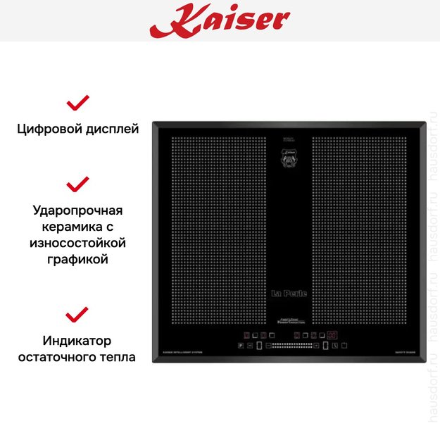 Варочная панель Kaiser KCT 67 FI оснащена системой автоматического отключения Safety Guard, благодаря которой прибор отключается сам в случае, если вы забыли это сделать. Наличие индикатора остаточного текла обеспечивает безопасность использования.