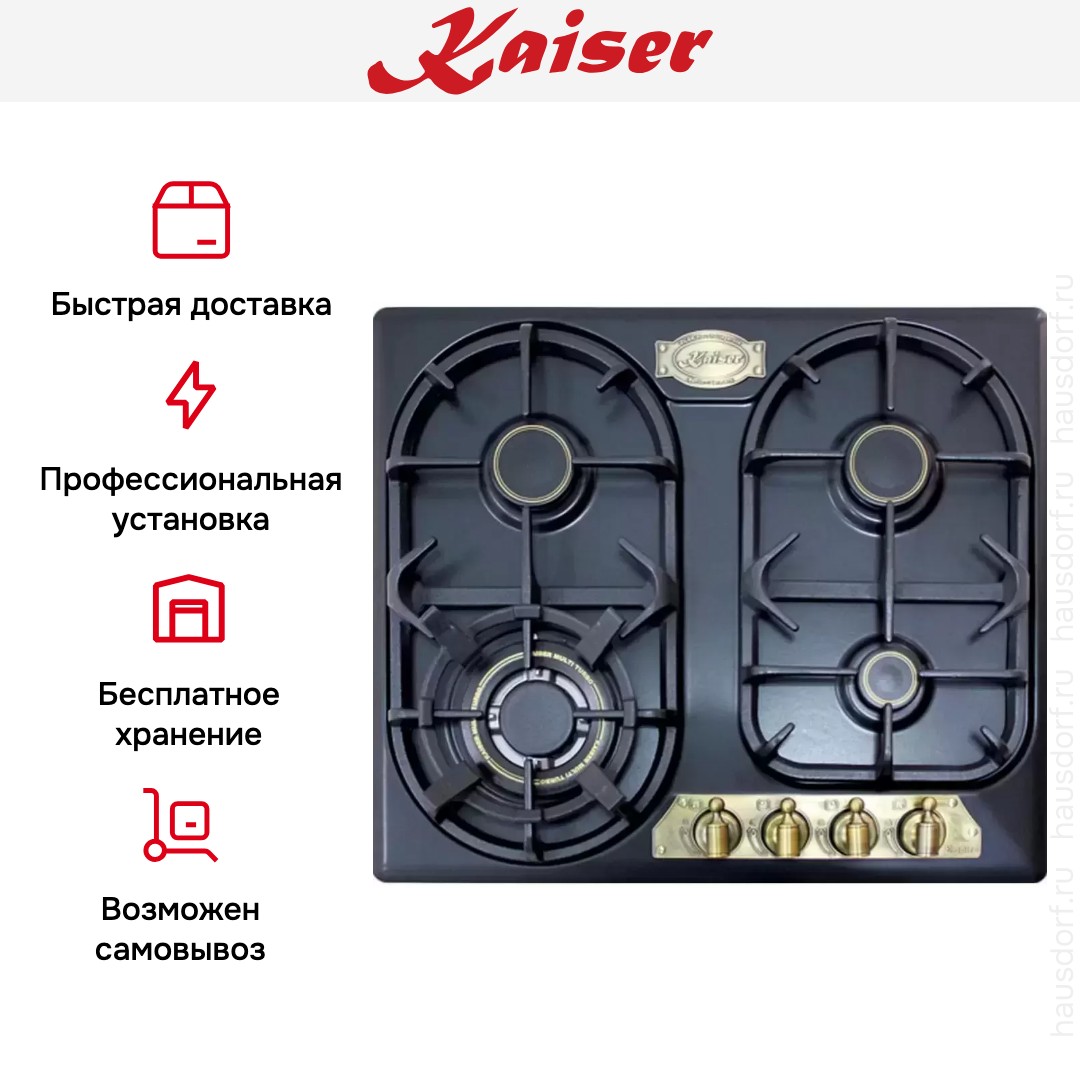 Варочная панель Kaiser KG 6325 Em Turbo — независимая варочная поверхность с эмалированной панелью конфорок в цвете антрацит. Всего предусматривается четыре горелки различной мощности. Среди достоинств устройства — наличие конфорки вок с тройным рядом пламени. Модель снабжена металлическими регуляторами мощности, выполненными в винтажном стиле, которые не нагреваются во время работы, обеспечивая комфортную настройку параметров работы. Плавный ход ручки позволяет делать даже минимальные изменения мощности. Встроенный автоматический поджиг повышает уровень комфорта и безопасности, так как нет необходимости пользоваться спичками или зажигалками. Данная опция работает от электричества.