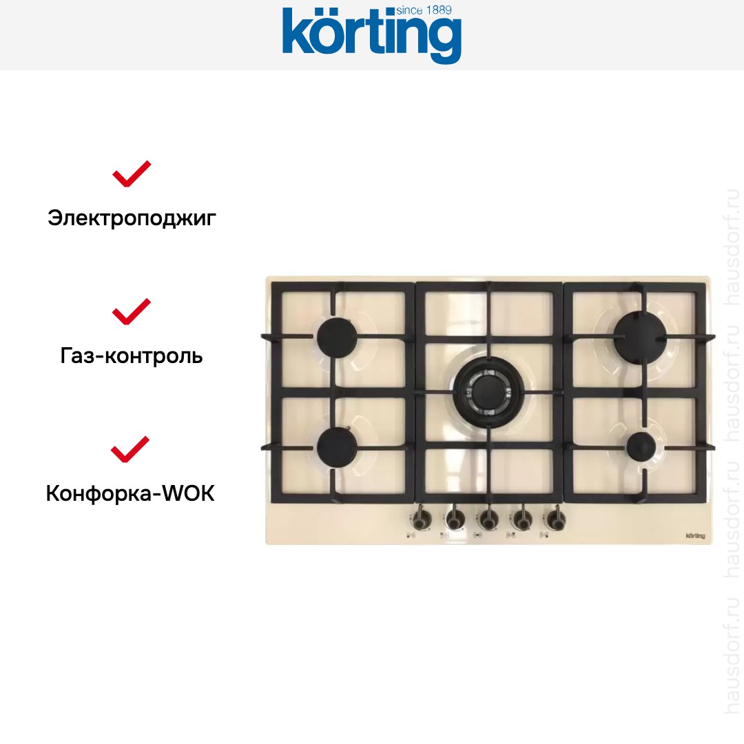 Korting HG 965 CTRB — встраиваемая в столешницу газовая варочная панель шириной 85 см с независимым подключением и системой безопасности «Газ-контроль». Модель относится к коллекции Calabria и подойдет для кухни в классическом или деревенском стиле. Поверхность из металла покрыта эмалью цвета слоновой кости и дополнена металлической бронзовой фурнитурой. Для размещения посуды предназначены раздельные решетки из чугуна, которые можно мыть в посудомоечной машине. Панель управления Кортинг HG 965 CTRB с механическими поворотными переключателями позволяет зажигать пламя при помощи электроподжига.