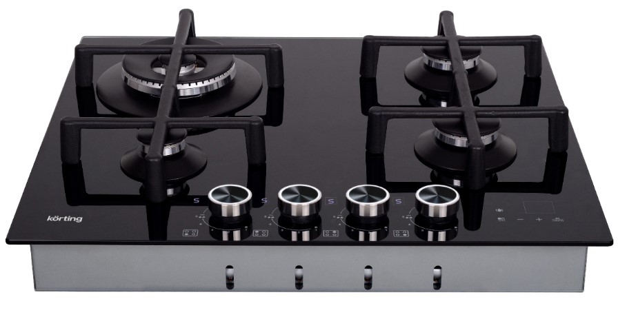 Выбор газовой варочной панели чаще всего обусловлен тем, что в частный дом или квартиру проведен именно газ в качестве обогрева. Работать с этой моделью довольно просто, так как мощность нагрева видна невооруженным взглядом — по силе огня в горелке. Количество конфорок в этой модели: 4.