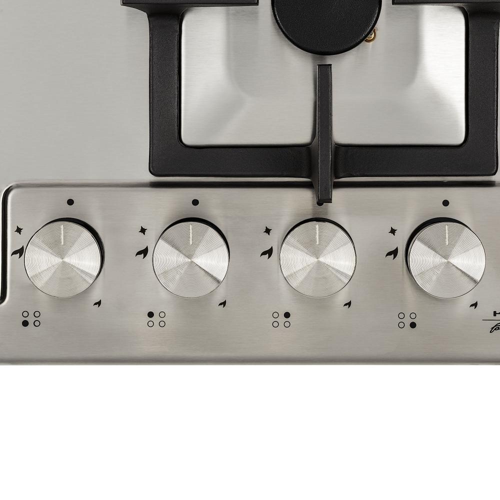 Выбор газовой варочной панели чаще всего обусловлен тем, что в частный дом или квартиру проведен именно газ в качестве обогрева. Работать с этой моделью довольно просто, так как мощность нагрева видна невооруженным взглядом — по силе огня в горелке. Количество конфорок в этой модели: 4.