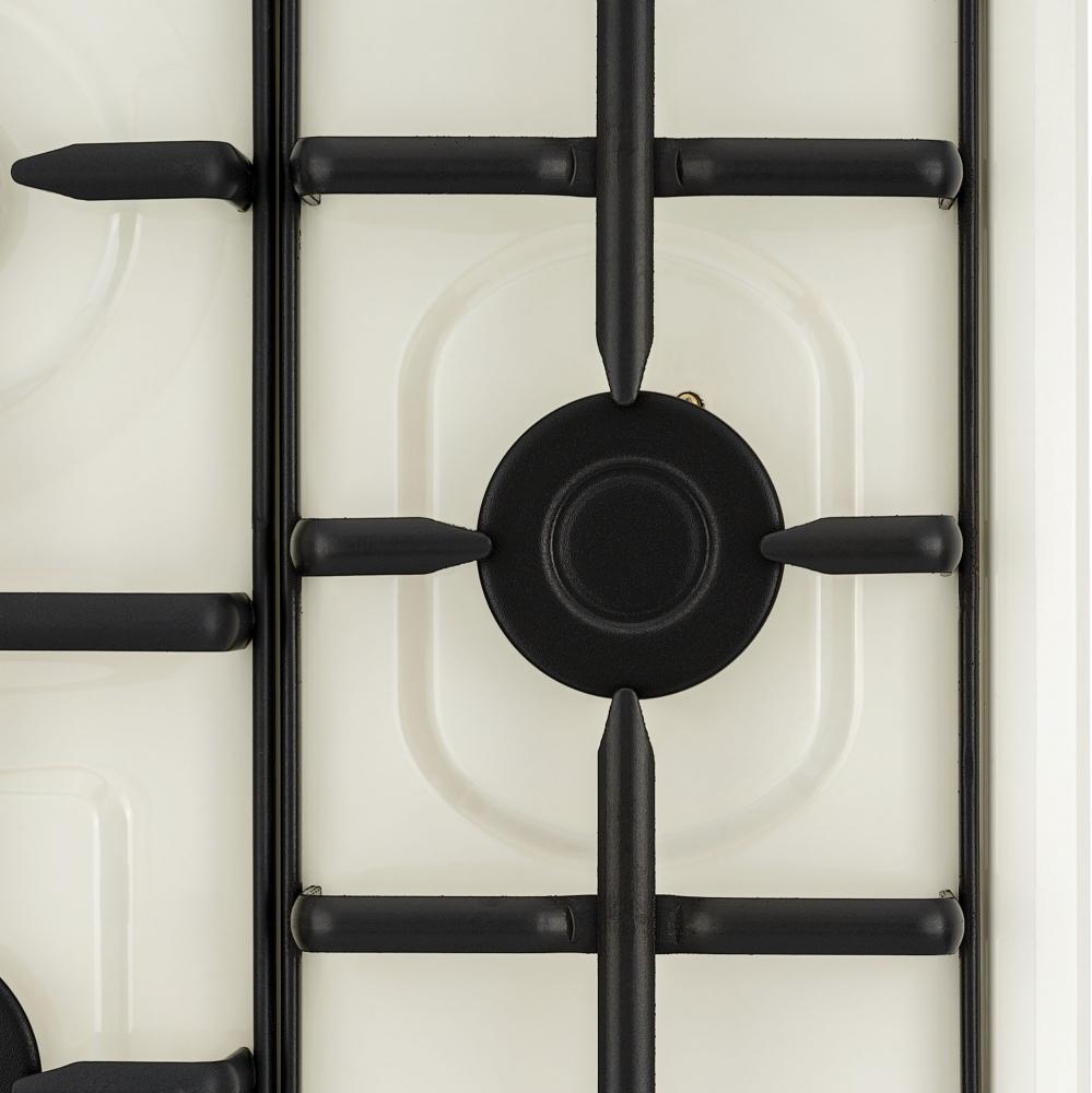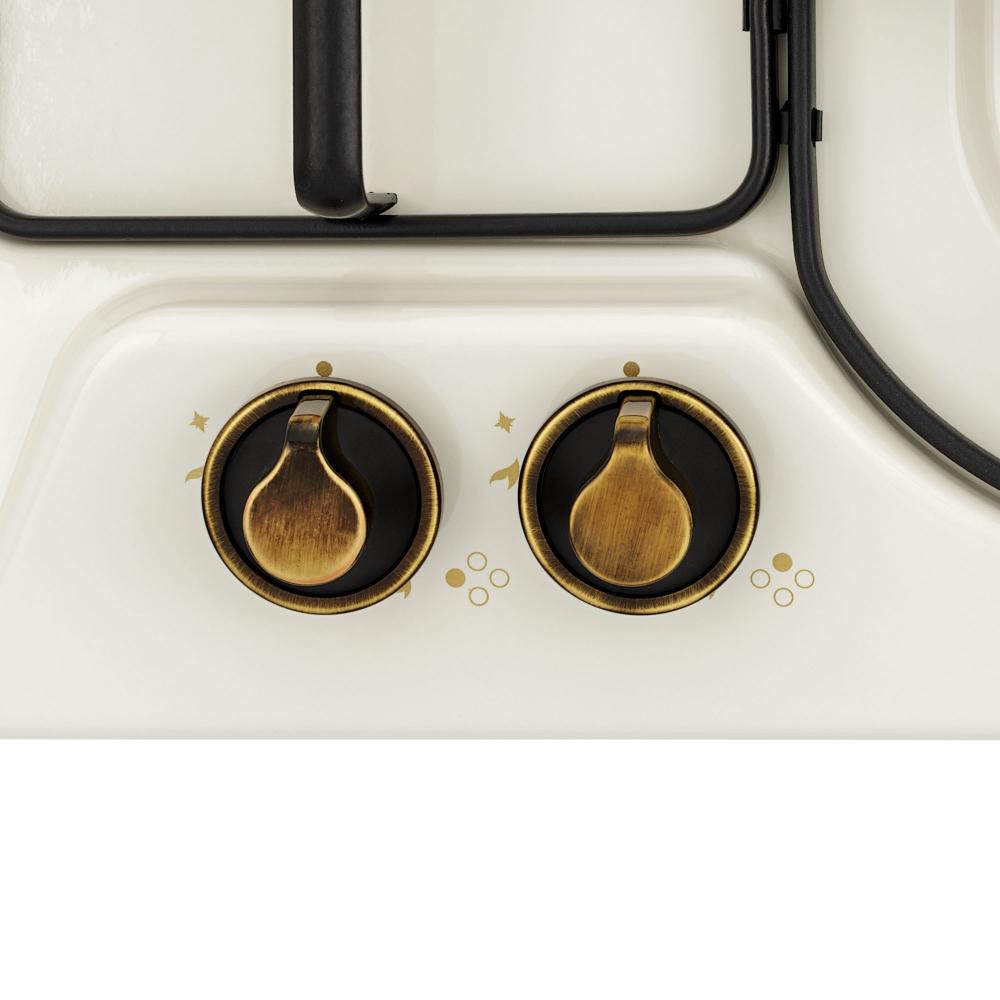 Цвет — слоновая кость. Открытый огонь не страшен ни вашей посуде, ни вам, так как горелки надежно закрыты решетками. Материал самой поверхности: эмалированный металл. Управление этой моделью механическое. Для переключения уровней нагрева, выбора функций используются следующие переключатели: поворотные. Простая система контроля за прибором делают его более универсальным, ведь разобраться сможет кто угодно.