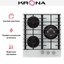 Выбор газовой варочной панели чаще всего обусловлен тем, что в частный дом или квартиру проведен именно газ в качестве обогрева. Работать с этой моделью довольно просто, так как мощность нагрева видна невооруженным взглядом — по силе огня в горелке. Количество конфорок в этой модели: 3.
