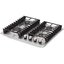 Двухконфорочные панели шириной около 30 см часто можно комбинировать с другими в дизайне «Домино». Такие панели нередко выбирают покупатели, которые пользуются для приготовления пищи другой техникой — мультиварками, духовками, СВЧ-печами. Конфорки при этом могут располагаться как в два ряда, так и в один, а форма панели может быть как привычной прямоугольной, так и овальной или в виде капли.