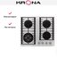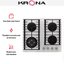 Выбор газовой варочной панели чаще всего обусловлен тем, что в частный дом или квартиру проведен именно газ в качестве обогрева. Работать с этой моделью довольно просто, так как мощность нагрева видна невооруженным взглядом — по силе огня в горелке. Количество конфорок в этой модели: 4.