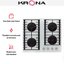 Выбор газовой варочной панели чаще всего обусловлен тем, что в частный дом или квартиру проведен именно газ в качестве обогрева. Работать с этой моделью довольно просто, так как мощность нагрева видна невооруженным взглядом — по силе огня в горелке. Количество конфорок в этой модели: 4.