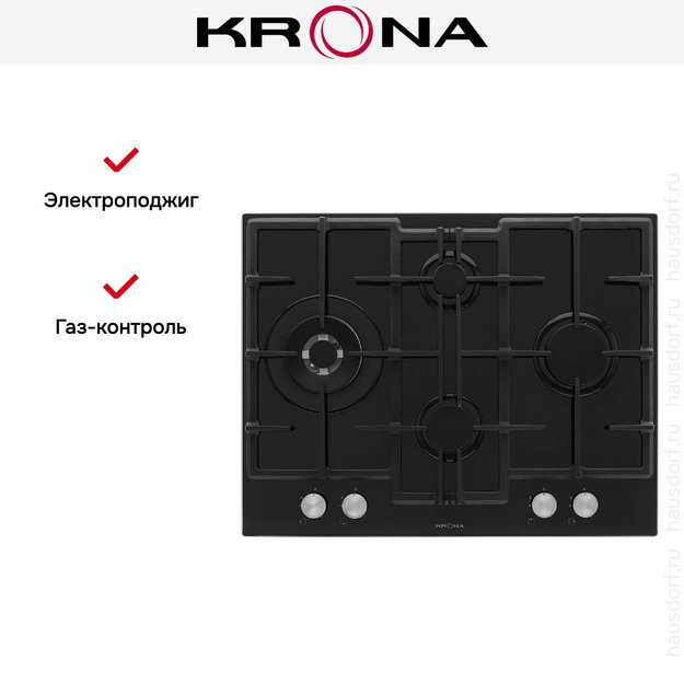 Выбор газовой варочной панели чаще всего обусловлен тем, что в частный дом или квартиру проведен именно газ в качестве обогрева. Работать с этой моделью довольно просто, так как мощность нагрева видна невооруженным взглядом — по силе огня в горелке. Количество конфорок в этой модели: 4.