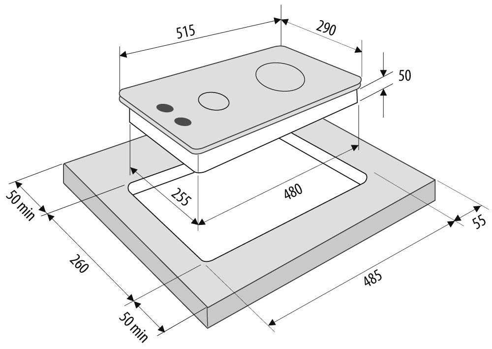Глубина варочной панели представляет собой расстояние от ближайшей к пользователю ее точки до самой дальней. В первую очередь глубина определяется соответствующими размерами столешницы, куда варочная панель будет встроена, и уже во вторую — количеством и расположением конфорок.