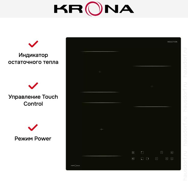 Данная модель Krona выполнена из прочной стеклокерамики и имеет продуманное электронное управление — поэтому производители устанавливают на нее длительный срок гарантии и службы. Вам будет легко работать с варочной панелью, которая отвечает основным требованиям современной кухни. Классический безрамочный дизайн в черном цвете делает ее универсальной практически для любого интерьера.