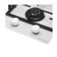 Цвет — белый. Материал самой поверхности: закаленное стекло. Управление этой моделью механическое. Для переключения уровней нагрева, выбора функций используются следующие переключатели: поворотные. Простая система контроля за прибором делают его более универсальным, ведь разобраться сможет кто угодно.