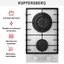 Выбор газовой варочной панели чаще всего обусловлен тем, что в частный дом или квартиру проведен именно газ в качестве обогрева. Работать с этой моделью довольно просто, так как мощность нагрева видна невооруженным взглядом — по силе огня в горелке. Количество конфорок в этой модели: 2.