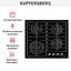 Модель Куперсберг FG 64 B входит в дизайн-линейку: Современный дизайн. Цвет — черный. Благодаря отсутствию рамки она отлично впишется в интерьер и не займет лишнее место на столешнице, которое можно использовать для работы. Открытый огонь не страшен ни вашей посуде, ни вам, так как горелки надежно закрыты решетками. Материал самой поверхности: закаленное стекло. Управление этой моделью механическое. Для переключения уровней нагрева, выбора функций используются следующие переключатели: поворотные. Простая система контроля за прибором делают его более универсальным, ведь разобраться сможет кто угодно.