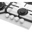 Выбор газовой варочной панели чаще всего обусловлен тем, что в частный дом или квартиру проведен именно газ в качестве обогрева. Работать с этой моделью довольно просто, так как мощность нагрева видна невооруженным взглядом — по силе огня в горелке. Количество конфорок в этой модели: 4.
