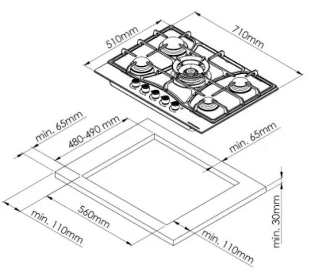 Газовая варочная панель Kuppersberg FG 73 B выполнена в классическом черном цвете, поэтому сможет стать прекрасным дополнением вашего кухонного гарнитура. Это независимая варочная панель, соответственно ее можно устанавливать как в комплекте с духовым шкафом, там и без, в зависимости от ваших потребностей. Модель изготовлена из прочного закаленного стекла легкой очистки — помимо эстетичного внешнего вида, этот материал является очень надежным и простым в уходе. Переключатели тоже сделаны в черном оттенке, с элементами белого, и удобно расположены снизу в центре панели.