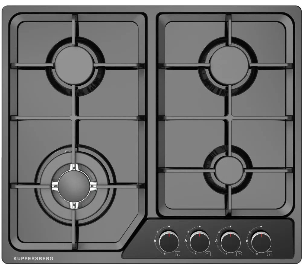 Выбор газовой варочной панели чаще всего обусловлен тем, что в частный дом или квартиру проведен именно газ в качестве обогрева. Работать с этой моделью довольно просто, так как мощность нагрева видна невооруженным взглядом — по силе огня в горелке. Количество конфорок в этой модели: 4.
