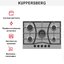 Газовая варочная панель Kuppersberg FS 73 X — независимая встраиваемая панель, которую можно устанавливать в гарнитур как отдельно, так и в комплекте с духовым шкафом. Поверхность выполнена из нержавеющей стали, надежного и неприхотливого в уходе материала, также устойчивого к царапинам и появлению коррозии. Решетки изготовлены из чугуна, который считается одним из самых прочных материалов и способен выдерживать большой вес посуды. Оригинальный дизайн решетки и ее необычная форма становятся ярким акцентом для этой модели. Вся фурнитура сделана в черном цвете, элементы матовые, без бликов, сочетаются по фактуре с основным материалом стали. Это скорее современный, технологичный дизайн — минималистичный, с необычными элементами декора, подойдет далеко не для каждой кухни. Лучше всего эта модель будет смотреться с другой бытовой техникой, тоже изготовленной в этой цветовой гамме.