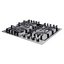 В качестве материала изготовления для решеток чаще всего используется чугун: этот металл не поддается коррозии, имеет длительный срок службы, способен выдержать самую тяжелую посуду и выглядит очень представительно. В числе недостатков чугуна — его солидный вес, хрупкость, а также шероховатая поверхность, затрудняющая удаление загрязнений. Решетки изготавливаются также из нержавеющей и эмалированной стали. Эмаль хороша тем, что может быть окрашена в разные цвета. С гладкой эмалированной или стальной поверхности капли, брызги и пятна удаляются гораздо проще, однако возникает риск соскальзывания посуды. Меньший вес этих решеток позволяет легко снимать их для очистки, они пригодны и для мытья в посудомойке.