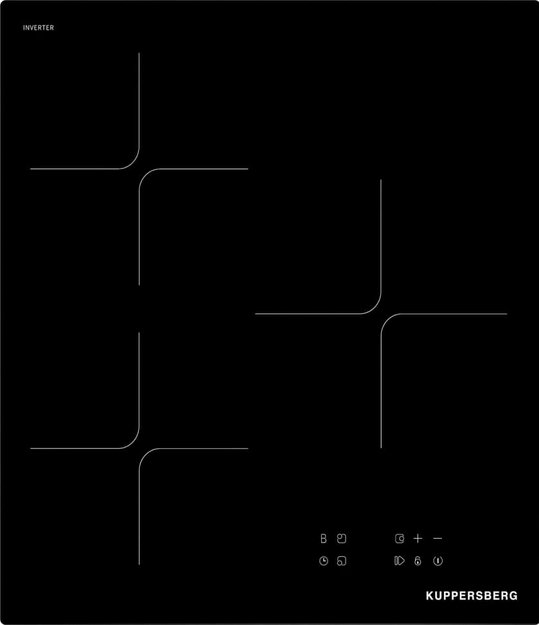 Варочная панель работает на индукционном нагреве — это значит, что повышается температура непосредственно посуды, в которой готовится блюдо. Таким образом промежуточная ступень с предварительным нагревом конфорки пропускается — сокращается время, повышается безопасность. Количество конфорок в этой модели: 3.