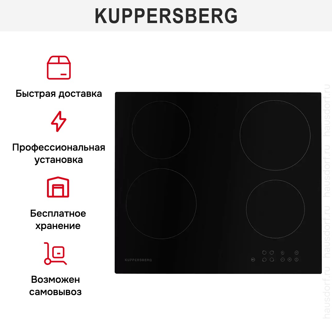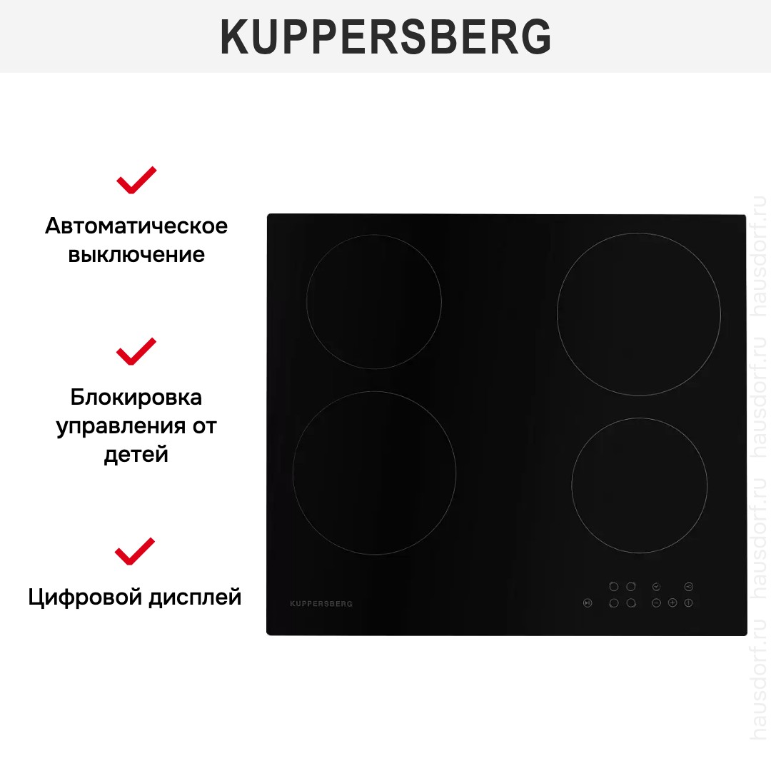 Kuppersberg ECO 601 —электрическая варочная панель с четырьмя зонами нагрева, практичная, простая в обращении, недорогая и безопасная. Немецкий бренд — производитель бытовой техники для дома появился на рынке не так давно, но успел завоевать признание покупателей благодаря высокому качеству продукции, надежности, долгому сроку гарантии. Специалисты компании разрабатывают оригинальный дизайн изделий, а производство находится в разных странах, в том числе в Китае. Больше информации об этой модели мы предлагаем в нашемобзоре.