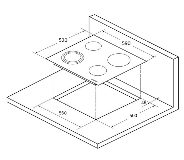Стандартная ширина устройства составляет около 59–60 см: таковы наиболее востребованные четырехконфорочные модели. Подобный размер облегчает встраивание варочной панели в стандартную кухонную столешницу.