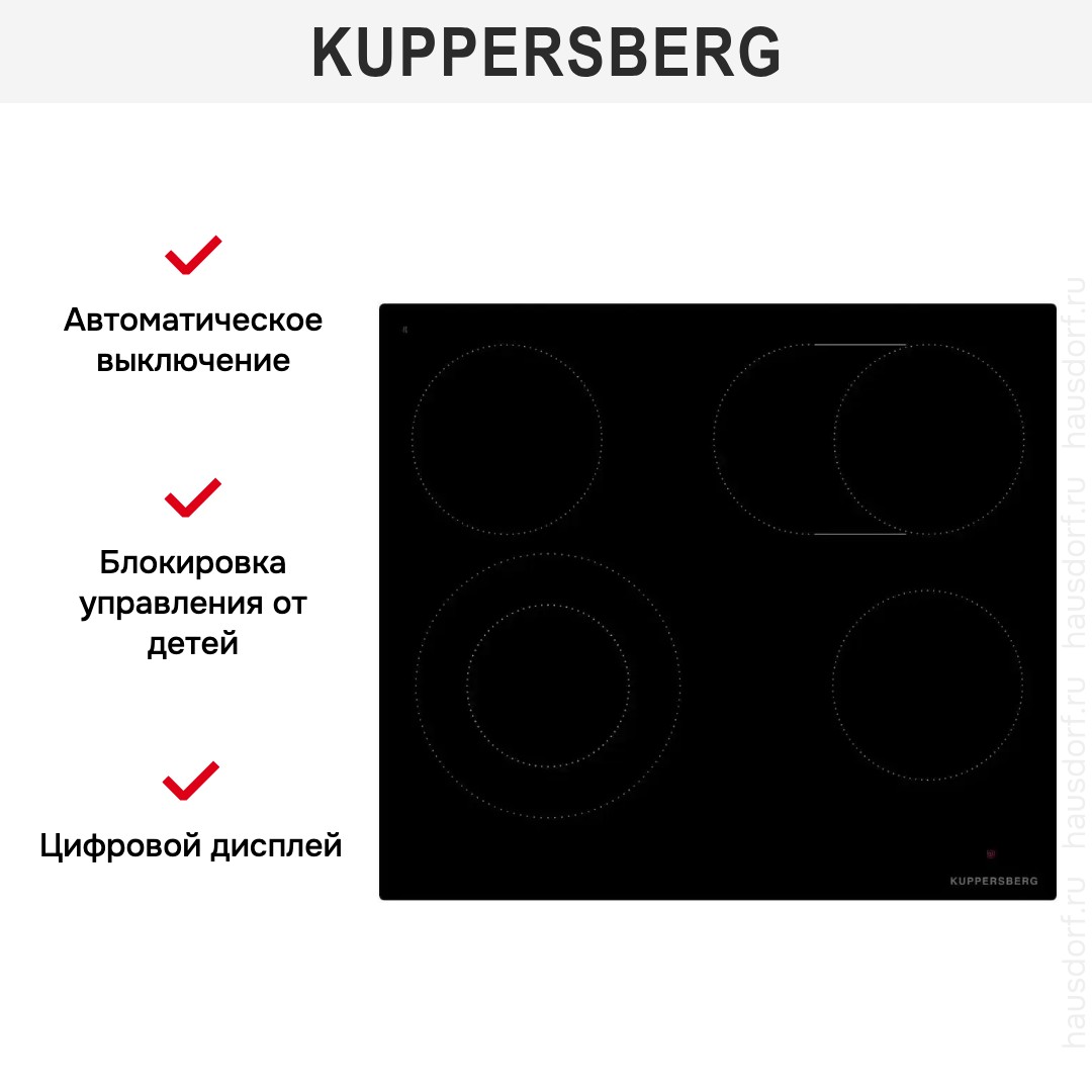 Варочная панель Kuppersberg ECS 624 — это современное и эргономичное решение для кухни, сочетающее в себе лаконичный дизайн, передовые технологии и удобство в повседневной эксплуатации. Модель представляет собой независимую электрическую поверхность, что позволяет размещать её в любом удобном месте кухонного гарнитура без привязки к духовому шкафу. Её габариты — 5×59×52 см — соответствуют стандартным параметрам встраиваемой техники, а рекомендуемые размеры ниши (56 см по ширине и 49,5 см по глубине) обеспечивают плотную и аккуратную установку. Панель выполнена в универсальном черном цвете с прямой обработкой краев, что подчеркивает строгость линий и гармонично вписывается в интерьеры в стиле минимализм, лофт или хай-тек. Управление осуществляется с помощью сенсорных кнопок TouchControl, расположенных спереди, что обеспечивает быстрый доступ к функциям и повышает безопасность во время приготовления. Цифровой дисплей наглядно отображает выбранные режимы и параметры, делая процесс интуитивно понятным. Стеклокерамическое покрытие отличается высокой прочностью, устойчивостью к перепадам температур и царапинам, а гладкая поверхность легко очищается даже от застарелых загрязнений. Электрическое подключение гарантирует стабильную работу и совместимость с бытовыми сетями. Благодаря продуманной конструкции, современному дизайну и надёжной электронике эта варочная панель станет функциональным и стильным элементом кухни, где важны комфорт, эстетика и технологичность.