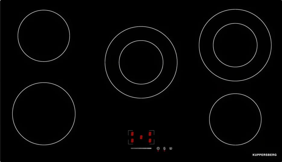 Данная варочная панель имеет классический электрический нагрев, при котором сначала раскаляются конфорки (точнее элементы, скрытые под поверхностью), а затем передают это тепло посуде. Разобраться, как с ней работать, просто даже пожилым людям, привыкшим к плитам. Количество конфорок в этой модели: 5.