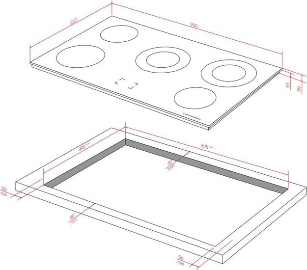 Электрические и индукционные варочные панели из стали, эмали и стеклокерамики имеют толщину от 4 до 5,5 cм, но выглядят более низкими, так как на них отсутствуют выступающие горелки. Как правило, подробные требования к толщине столешницы для установки приводятся в руководстве пользователя.
