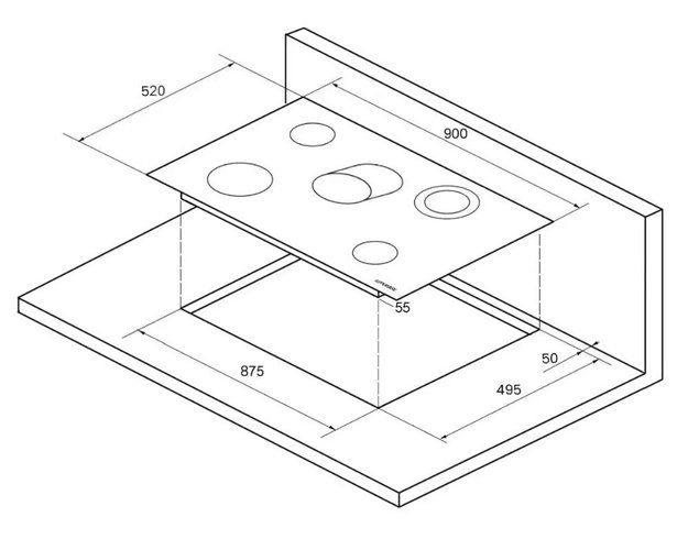 Стандартная ширина устройства составляет около 59–60 см: таковы наиболее востребованные четырехконфорочные модели. Подобный размер облегчает встраивание варочной панели в стандартную кухонную столешницу.
