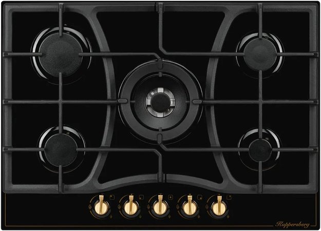 Выбор газовой варочной панели чаще всего обусловлен тем, что в частный дом или квартиру проведен именно газ в качестве обогрева. Работать с этой моделью довольно просто, так как мощность нагрева видна невооруженным взглядом — по силе огня в горелке. Количество конфорок в этой модели: 5.