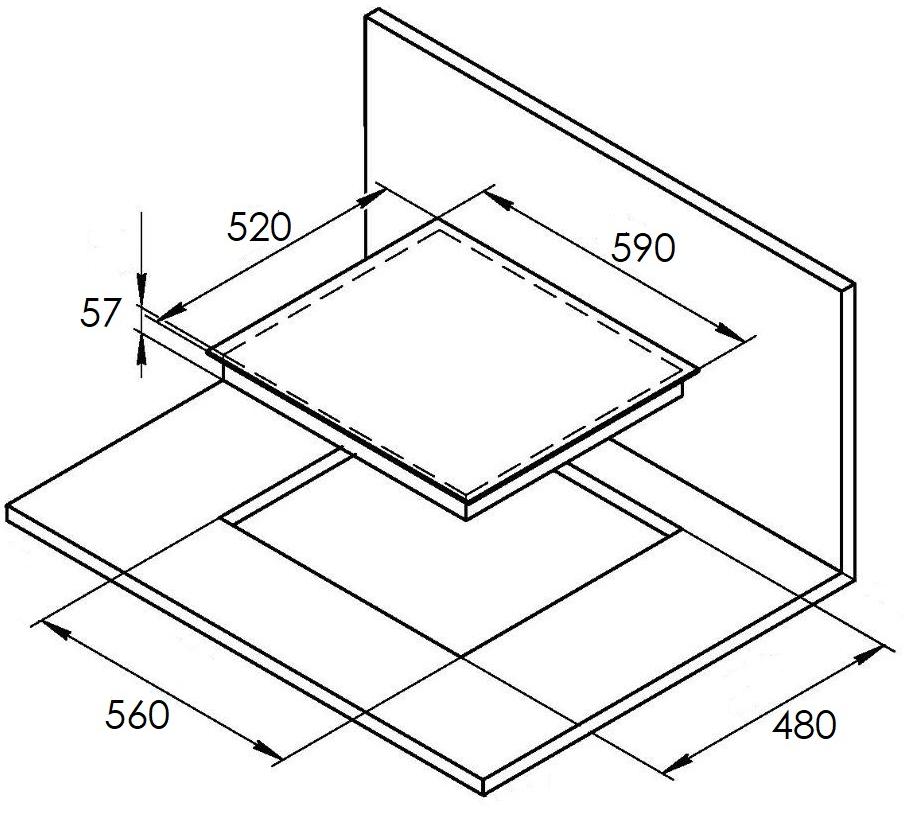 Отверстие в нише выполняют, исходя из размеров самой варочной панели — они должны соответствовать друг другу либо немного превышать размеры выреза. При выборе наиболее распространенной варочной панели с 4 конфорками в столешнице вырезается отверстие шириной 59 см и глубиной около 49-50 см. Толщина столешницы должна быть немного меньше, чем высота варочной панели, в противном случае панель придется заглубить, чтобы она не слишком выступала.