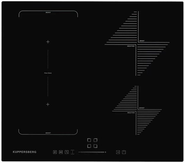 Индукционная варочная панель Kuppersberg ICS 614 – это стильная модель с оригинальной разметкой зон. Гладкая черная стеклокерамическая поверхность с прямым краем и контрастными элементами подойдет для кухни, оформление которой решено в любом актуальном на сегодняшний день стиле.