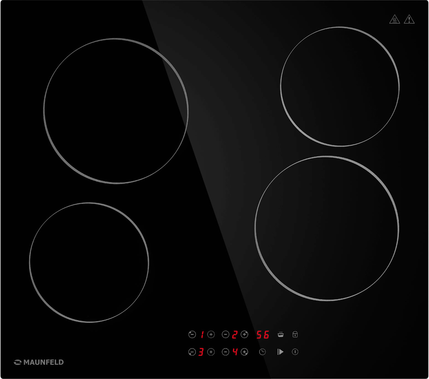Данная варочная панель имеет классический электрический нагрев, при котором сначала раскаляются конфорки (точнее элементы, скрытые под поверхностью), а затем передают это тепло посуде. Разобраться, как с ней работать, просто даже пожилым людям, привыкшим к плитам. Количество конфорок в этой модели: 4.