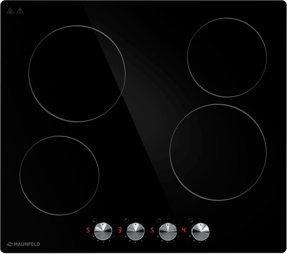 Данная варочная панель имеет классический электрический нагрев, при котором сначала раскаляются конфорки (точнее элементы, скрытые под поверхностью), а затем передают это тепло посуде. Разобраться, как с ней работать, просто даже пожилым людям, привыкшим к плитам. Количество конфорок в этой модели: 4.