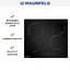 Выглядит как сдержанная и элегантная варочная панель черного цвета с низким профилем: габариты 5.2×59×52 см создают компактный силуэт, который легко впишется в кухонную поверхность. Рабочая зона выполнена в виде единой стеклокерамической плоскости, а элементы управления расположены спереди — сенсорные TouchControl-переключатели аккуратно встроены в переднюю часть, обеспечивая плавный доступ к функциям без выступающих ручек. Четыре зоны нагрева расставлены симметрично, две из них диаметром 200 мм и две по 165 мм, что дает визуально уравновешенную композицию.