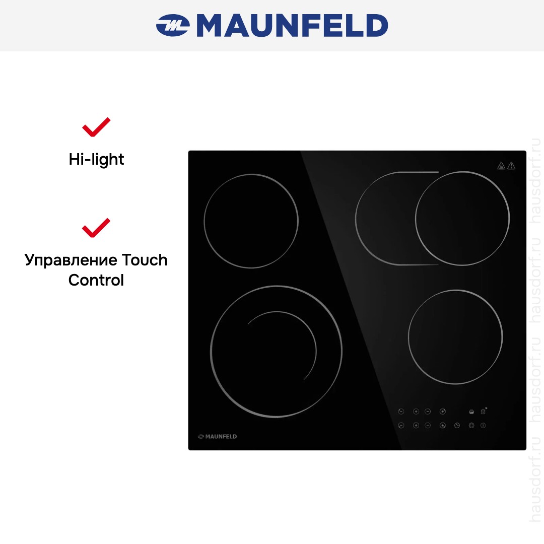Цвет — черный. Благодаря отсутствию рамки она отлично впишется в интерьер и не займет лишнее место на столешнице, которое можно использовать для работы. Материал самой поверхности: стеклокерамика. Управление этой моделью электронное. Для переключения уровней нагрева, выбора функций используются следующие переключатели: сенсорные/TouchControl. Продвинутая система контроля за прибором делают его современным и отвечающим на главные запросы покупателя.