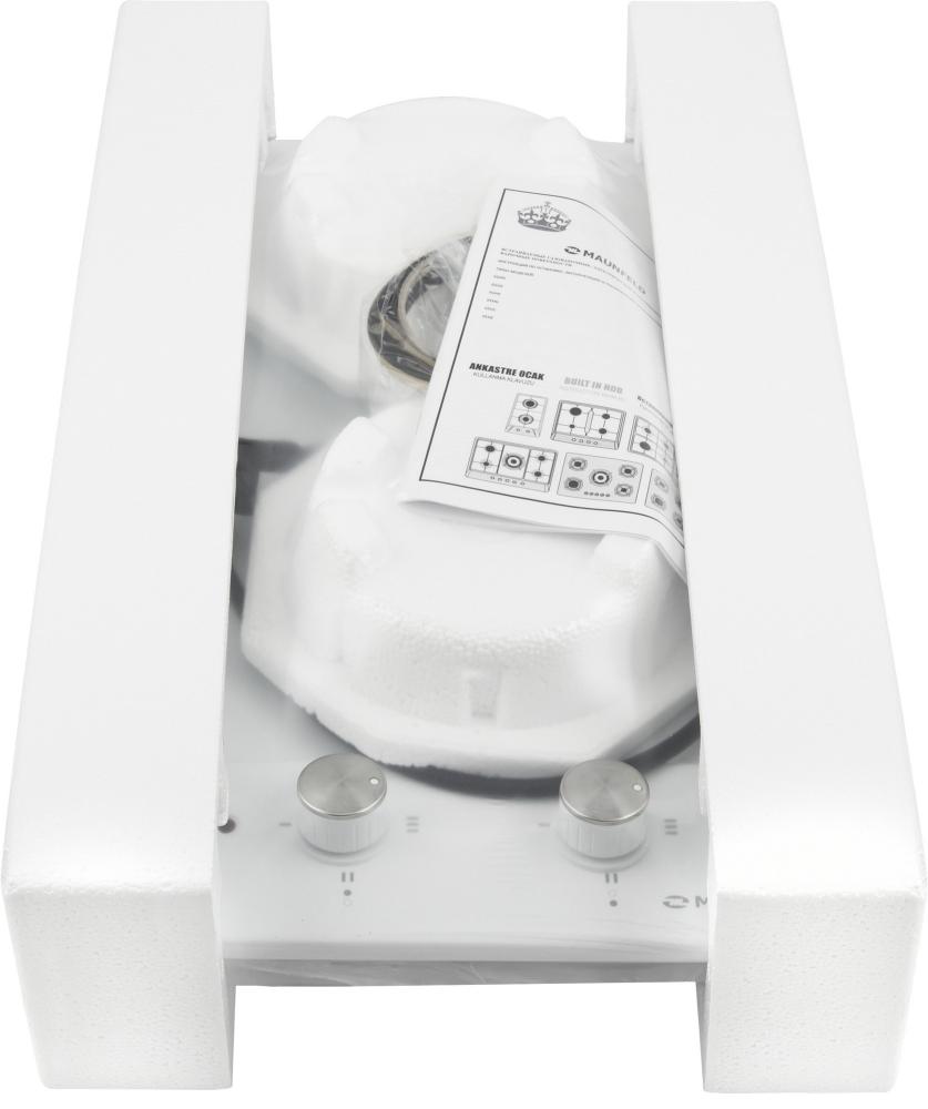 Maunfeld EEHE.32.4W — независимая электрическая варочная панель шириной 30 см с оригинальными ножками, которая может использоваться и как встраиваемая, и как отдельно стоящая. Поверхность изготовлена из стали с покрытием из белой эмали, устойчивой к повышению температуры. Две чугунные конфорки HP RAPID мощностью по 1500 Вт со стальной окантовкой гарантируют быстрый нагрев. Механическое управление позволяет выбирать один из трех уровней нагрева при помощи не нагревающихся поворотных переключателей с хромированными накладками. Гарантия производителя на эту модель составляет 3 года.