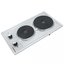 Двухконфорочные панели шириной около 30 см часто можно комбинировать с другими в дизайне «Домино». Такие панели нередко выбирают покупатели, которые пользуются для приготовления пищи другой техникой — мультиварками, духовками, СВЧ-печами. Конфорки при этом могут располагаться как в два ряда, так и в один, а форма панели может быть как привычной прямоугольной, так и овальной или в виде капли.