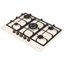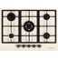 Газовая варочная панель MAUNFELD EGHE.75.33CBG2.R\G выполнена в классическом стиле. Поверхность в теплом бежевом оттенке контрастирует с черными чугунными решетками и конфорками. Регуляторы сделаны под старину, в бронзовом оттенке. Они удобно расположены на фронтальной части панели — к ним всегда есть доступ, они не нагреваются во время работы плиты.