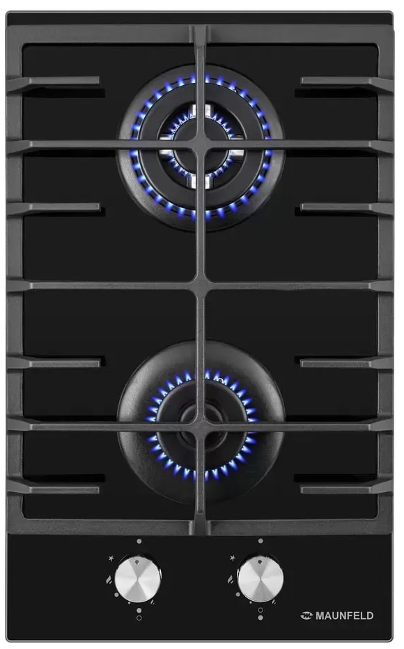 Газовая варочная панель MAUNFELD EGHG.32.63CB/G — компактная модель с лаконичным дизайном. Поверхность изготовлена из черного закаленного стекла, решетка — из прочного чугуна. Поворотные регуляторы выполнены из серебристой стали и оснащены функцией электроподжига.